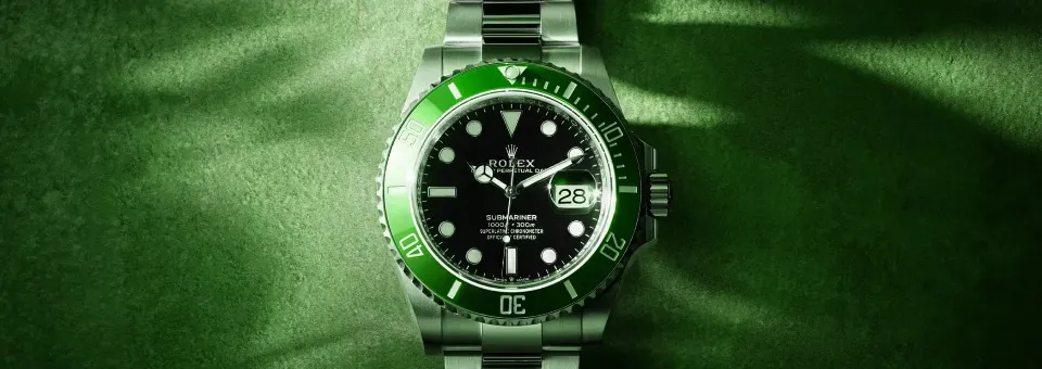 ロレックスが初めて製造したダイバーズウォッチとして1953年に登場。オイスターケースの精度をさらに高めて水中での使用に耐え、また回転式ベゼルを搭載してその後の全てのダイバーズウォッチのお手本となるデザインが完成しました。現在でもデイトナと人気を二分するロレックスを代表する時計であり50周年を記念して販売された緑ベゼルの物や逆に品番4桁の古い物、1世代、2世代前のモデルまで大人気となっています。またデイト表示を省略しより防水性を高めた14060はこれまたその後もシリーズも含め人気の高く安定した高値相場で取引されるモデルです。